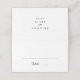 Cette carte de mariage de calligraphie moderne est parfaite pour un mariage rustique. Le design sobre et élégant présente une typographie de script classique et sophistiquée en noir et blanc. Personnalisez le dos de la carte avec les noms de la mariée et du marié et la date.