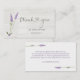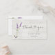 Élégante Lavande fleurs Carte de remerciements sur arrière - plan à effet de bois clair. Le texte "merci" est écrit dans une police de caractères avec les coeurs joints. Ils sont heureux de vous remercier pour toute occasion.