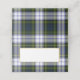 Carte de place pliée élégante faite dans le motif plaid classique bleu, vert, jaune, noir et blanc Gordon Dress. Une zone de texte blanc doré, sur le devant, peut être personnalisée à la main pour chaque client à votre réception.