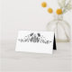 Carte d'endroit pliée en noir et blanc sur le thème de l'Halloween avec aquarelle noire d'un jack-o-lanterne, chats noirs, chouettes, chauves-souris et vignes. Personnalisez à la main chaque invité de votre mariage. Le dos de la carte contient du texte noir personnalisé prêt à être modifié pour lire ce que vous voulez.