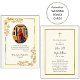 De superbes rouleaux d'or encadrent une icône chrétienne orthodoxe de Joachim et Anna dans cette carte de prière mariage. Customisez avec tous vos détails personnels et préférences, y compris la police, la taille, la couleur et le placement. N'hésitez pas à nous contacter pour toute question. Remarque : La plupart des icônes sont très anciennes. Si l'image est augmentée plus que nous l'avons, l'image pourrait être déformée. Nous n'imprimons, ne fabriquons ni n'expédions aucun des produits. Merci!