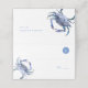 Cartes de lieu de mariage de plage avec choix de repas design avec des crabes bleu aquarelle uniques. Espace prévu pour le nom du client, le numéro de table et le choix initial du repas : (v) vegan, (c) poulet, (b) boeuf, (f) poisson ou (gf) sans gluten. Les cartes sont inversées pour révéler les noms de mariée et de mariée correspondants et la date du mariage. L'intérieur est décoré d'une couleur bleu uni. Conçu pour correspondre à la collection de crabes côtiers Do Tell a Belle. Pour voir d'autres créations comme celle-ci, visitez le www.zazzle.com/dotellabelle Unique aquarelle art et design de Victoria Grigaliunas de Do Tell A Belle