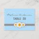 Vous recherchez la carte de numéro de table de mariage parfaite ? Cette marguerite et ce ruban sont décorés d'un ruban gris et de trois marguerites douces. Fraîche, design et lumineuse, dans ce thème bleu, gris et blanc. Faites savoir à vos invités mariages combien vous les appréciez avec ce petit design doux. Customisez le texte et la couleur, et faites-le exactement le design avec lequel vous avez besoin de célébrer votre journée parfaite! Commandez tôt et vérifiez une chose de plus dans votre liste de choses à faire.