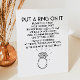 C'est un panneau de Fête des mariées "Mettez une bague dessus". Les clients doivent prendre une bague et la porter. La règle est qu'ils ne peuvent pas dire "MARIAGE" ou "BRIDE", celui qui glisse devra abandonner ses anneaux. La façon de gagner ce jeu de dames est de collecter le plus Bling!. Jeu de Fête des mariées, Jeux de Fête des mariées, Activité de Fête des mariées, Activités de Fête des mariées, Idées de Wedding shower, Mettre une bague dessus, Activités amusantes pour la douche nuptiale