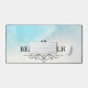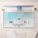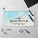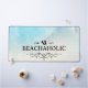 Amusant pour tous ceux qui aiment le tapis de bureau de plage présente une aquarelle d'une plage avec de l'eau et dans un élément de typographie fantaisie le mot "accro à la plage"
