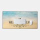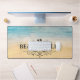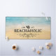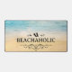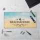 Amusement pour tous ceux qui aiment le tapis de bureau de plage comporte une photo d'une plage avec de l'eau et dans un élément de typographie fantaisie le mot "accro à la plage"