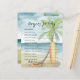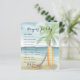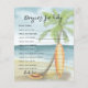 Bébé à bord ! Baby shower invitation - parfait pour un baby shower d'été. Plage à thème. Watercolor design a une scène océan et plage avec surf, palmier et casquette d'été.