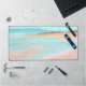 Un soleil de plage d'été rétro peinture côtière, avec un soleil brillant, des vagues de la mer, du sable de plage et des montagnes, avec des couleurs vives et joyeuses, y compris des tons bleu pour l'océan, des jaunes chauds pour le soleil, et des tons terre pour le sable, créant une atmosphère vivante et accueillante, ajoutant coloré sentiment de vacances vintage à toute décoration d'espace, Induisant un sentiment de joie, de détente, et l'esprit insoucieux associé à passer le temps la plage pendant la saison estivale.