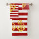 Plage d'Ancre de voile rouge et jaune Serviettes de bain à thème de Ricaso - conçu comme un ensemble de 3 mais vous pouvez acheter individuellement si vous le souhaitez - conçu avec une ancre jaune avec corde sur un arrière - plan rayé rouge et blanc
