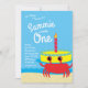 Ces adorables crabes colorés mod avec un gâteau d'anniversaire invitations sont parfaits pour une fête de 1er anniversaire! Customisez le texte pour en faire les vôtres. Le look et l'ambiance modernes sont parfaits pour célébrer votre petit qui aime la plage et les crabes à leur premier anniversaire !