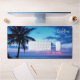 Photo design et classe de bleu clair et foncé, turquoise, violet, améthyste, violet et coucher de soleil rose pastel sur une île hawaïenne tropicale et exotique avec palmiers. Avec place pour customiser ou personnaliser avec un nom, monogramme ou initiales de votre choix. Un design joli, moderne et joli pour les amoureux d'Hawaï ou des Caraïbes, des plages, de l'océan, de la mer, de la beauté des tropiques, et des destinations de vacances d'été populaires. Montrez votre amour pour les couchers de soleil, les tropiques et la photographie de la nature avec ce joli design décoratif et tendance disponible sur une variété de couvertures et d'accessoires de dispositifs électroniques de protection moderne.