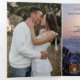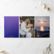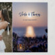 Plage triple ou invitation de mariage de destination avec deux de vos photos préférées. Le design montre une scène côtière bohème avec lanterne et bougie avec éclat lumineux donnant sur l'océan. Le panneau de détails a un design moderne violet. Vous pouvez également utiliser l'espace pour ajouter toutes les informations que vous mettrez sur une carte d'enceinte, comme l'hébergement ou les directions, etc. Vous pouvez également utiliser la dernière page comme carte RSVP.