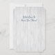 Cette maison de lac ou maison de plage invitation à thème avec ancres bleu marine avec arrière - plan en bois blanc patiné peut être personnalisée avec toutes vos informations et votre propre photo.