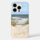 Boîtier téléphonique à thème de plage tropical avec photo de la mer avec dunes de sable et herbes de mer, avec vagues dans l'arrière - plan et nom ou texte personnalisable de votre choix.