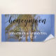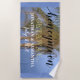 Lune de miel Getaway plage ou thème de mariage de destination. Personnalisez avec les prénoms des jeunes mariés en texte blanc et la date du mariage. La lune de miel est écrite en écriture noire. Getaway est écrit dans une police jaune cool. L'Arrière - plan a le ciel bleu avec un gros plan de trois palmiers avec des frondes qui soufflent dans la brise de l'océan. Serviettes de plage pour les jeunes mariés. Photographie et design d'origine © TamiraZDesigns.