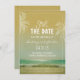 Palmiers, Plage Vagues Mariage Mer Économisez Les Cartes De Date. Joli et simple avec des polices manuscrites peut être utilisé une carte postale aussi.