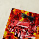 Le dessin d'une peinture à l'huile est un camion de feu rouge se dirigeant vers un incendie