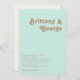 Cette plage rétro | aqua faire-part de mariage est parfait pour votre simple vintage, coloré mariage d'été boho tropical. Sa police bohème unique du milieu du siècle donne à ce design une ambiance minimaliste super hippie classique. Supposons que vous cherchiez un design qui présente des couleurs vives et rustiques de l'océan côtier pour votre mariage créatif à destination des années 70. Dans ce coque, ce produit, et sa collection de mariages de coordination, sont ce que vous recherchez. N'hésitez pas à modifier la couleur pour ajouter vos propres illustrations, graphiques ou photos. Si vous avez des questions sur la conception de ce produit, n'hésitez pas à nous contacter !