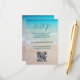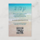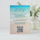Carte d'enceinte mariage verticale avec scène de plage et modèle de code QR. Utilisez pour que les invités répondent à votre faire-part de mariage facilement, en ligne. Cette carte a deux façons de répondre, juste en coque les clients préfèrent l'un à l'autre. Eau tropicale bleue de l'océan et sable de plage est l'arrière - plan du texte bleu de la mer. Le site est en noir. Remplacez le code QR par le vôtre.