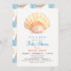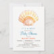 Nautique été Beach Seashell garçon baby shower invitation. Les coquillages Invitations sont bleu, orange et pêche.