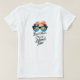 Le design des T-shirts présente un graphisme ludique et dynamique centré autour de l'expression "Plage S'il vous plaît, je suis sur l'île Time." Le texte est stylisé dans une police de plage amusante avec "Plage S'il vous plaît" affiché en grand format, et "I'm on Island Time" sous lui dans un script plus petit et décontracté. L'arrière - plan est composé d'éléments tropicaux colorés tels que des palmiers, des vagues et un coucher de soleil, évoquant une atmosphère décontractée et de vacances. Le design général est gai et accueillant, parfait pour les amateurs de plage et ceux qui aiment un style de vie insulaire insouciant.