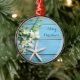 Ornements de Noël sur la plage avec étoiles de mer, orchidées et texte personnalisable Joyeux Noël. Il est en métal de qualité supérieure ornement rond et mesure 2,125 pouces et poids 1,25 onces.