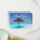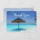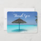 Un carte de remerciements mariage (ou autre occasion / événement). Conçu avec une photo d'une plage tropicale pittoresque aux Maldives. Plage de sable blanc et eaux cristallines avec parasol en chaume isolé. Idyllique et sereine.