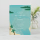 Palmiers peints à la main, plage et océan forment un arrière - plan tropical pour ce design de mariage de destination.