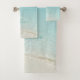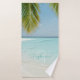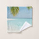 Vue paradisiaque d'un paradis de plage tropicale avec des frondes turquoise de mer et de palmiers dominant le magnifique sable blanc. Profitez de cette scène de rêve immaculée sur votre serviette de bain 3 pièces Set chaque fois que vous vous offrez un petit "me time" dans la salle de bain. Facile à customiser avec votre propre nom de monogramme & initial dans la typographie décorative de police - ou supprimer du texte si vous préférez. Coordination du rideau de douche et du matelas de bain disponibles dans cette gamme également.