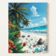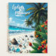 Un joli planificateur tropical personnalisé avec une belle scène de plage avec palmiers, fleurs tropicales, eau bleue et poteries se lavant jusqu'au rivage.