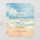 Une faire-part de mariage pour un mariage à la plage, un mariage à destination. Une plage de sable couleur eau, des vagues de l'océan et un ciel bleu comme arrière - plan. 1 feuille = 1 invite imprimé bord à bord.