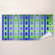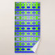 Ce kit de serviettes est revêtu d'un plaid bleu-vert sur un champ de blanc.