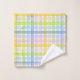 Art numérique abstrait des rayures en pastel plus de couleur claire d'arc-en-ciel décrites par la couleur solide plus mince, alors entrecroisée pour la faire apparaître plaid-comme, sur un fond blanc.