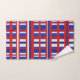 Cette serviette a une torsion moderne sur un plaid traditionnel dans un mélange patriotique de rouge, blanc et bleu.