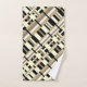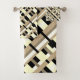 Cette serviette de bain est de style moderne et présente une touche taupe, tan, noir et blanc.