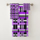Ce set de serviettes a une touche moderne sur plaid dans les tons violet, lavande, gris, noir et blanc.