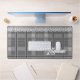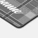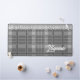 Un imprimé plaid féminin en noir, blanc gris. Encadré de dentelle blanche délicate et de perles.
