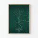 Une superbe impression artistique de la carte de Seattle rendue dans une palette de couleurs vibrantes de la ville d'Émeraude. Chaque rue, autoroute et voie navigable est cartographiée avec précision sur un fond émeraude riche. Parfait comme pièce maîtresse pour votre maison, votre bureau ou comme cadeau pour tout Seattleite.