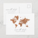 Rust aquarelle world map mariage enregistrer la date carte postale. Avec une belle aquarelle rouille carte du monde, coeur mobile à positionner sur votre emplacement de choix et l'espace pour le nom emplacement et des détails supplémentaires. Idéal pour les mariages de sites étrangers ou simplement parce que vous aimez votre état