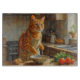 Add a sleek and energetic touch to your kitchen with this Abyssinian cat design featuring a lively feline cooking in a cozy setting. With its elegant build, ticked coat, and curious personality, this artwork captures the breed’s active and intelligent nature.