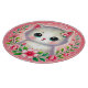 Chaton blanc aux grands yeux joliment illustré, orné de fleurs roses à motif circulaire. Parfait pour exprimer la gentillesse, la joie, ou combiner des éléments de la nature et des animaux adorables dans les oeuvres d'art.
