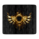 Ailes mécaniques brillantes, avec des engrenages et bannière ronde en laiton. Steampunk