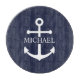Ce cadeau personnalisé présente un design d'ancre blanche avec un nom personnalisé dans une police serif blanche classique sur arrière - plan bleu marine. Une idée de cadeau nautique réfléchie pour la décoration de la maison de plage, le cadeau de la fête des pères pour papa ou un cadeau unique pour toute occasion spéciale.