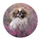 Cette jolie photo de Getty Images présente un chiot de race Pekingese assis dans des fleurs roses.
