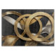 Cette élégante oeuvre abstraite présente des anneaux dorés et argentés entrelacés sur un arrière - plan noir élégant, créant un sentiment de mouvement et de sophistication moderne. Idéal pour l'art mural, la décoration à la maison et les cadeaux pour ceux qui apprécient le design géométrique et le style de luxe.