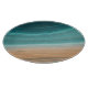A stunning abstract composition featuring dynamic, sweeping curves. The color palette suggests a harmonious blend of deep ocean or tropical waters meeting warm, sun-kissed sands, creating a sense of movement and natural energy.