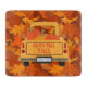Caractéristiques de conception d'automne d'amusement qu'un camion pick-up orange pâle a remplies de trois citrouilles contre un mélange d'arrière - plan de feuille d'automne. La porte à rabattement arrière lit l'automne heureux Yall.