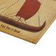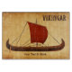 Un Viking long navire avec une voile rouge vu en profil du côté droit et superposé sur une vieille image arrière - plan en papier. Le texte "Bois sculpté", "VIKINGAR" (Vieux Norse - VIKINGS) apparaît également. Customisez en ajoutant votre propre texte supplémentaire.