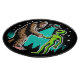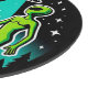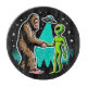 Cette image fantaisiste illustre une rencontre amicale entre deux êtres légendaires : Bigfoot et un alien. La scène, dressée contre un ciel étoilé avec des silhouettes de pins, montre Bigfoot et l'alien serrant la main sous le faisceau d'un OVNI planant au-dessus. Bigfoot, recouvert de fourrure brune, se tient sur la gauche tandis que l'alien vert et humanoïde avec une grande tête et des yeux noirs se tient sur la droite. La combinaison de ces personnages emblématiques dans une réunion pacifique ajoute une touche ludique aux deux mythes, ce qui en fait un morceau fascinant et humoristique pour les amateurs de l'inexpliqué.