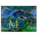 Cette planche à découper est ornée d'un élégant arrière - plan en marbre d'agate bleu et vert, aux accents de parties scintillant en faux or. Le monogramme combine écriture manuscrite et polices sans serif modernes pour un look élégant et sophistiqué. Cela fera le cadeau idéal car il peut être customisé avec un nom et une initiale. Les paillettes et la texture en mauvais état créent un mélange parfait de chic et de grunge.
